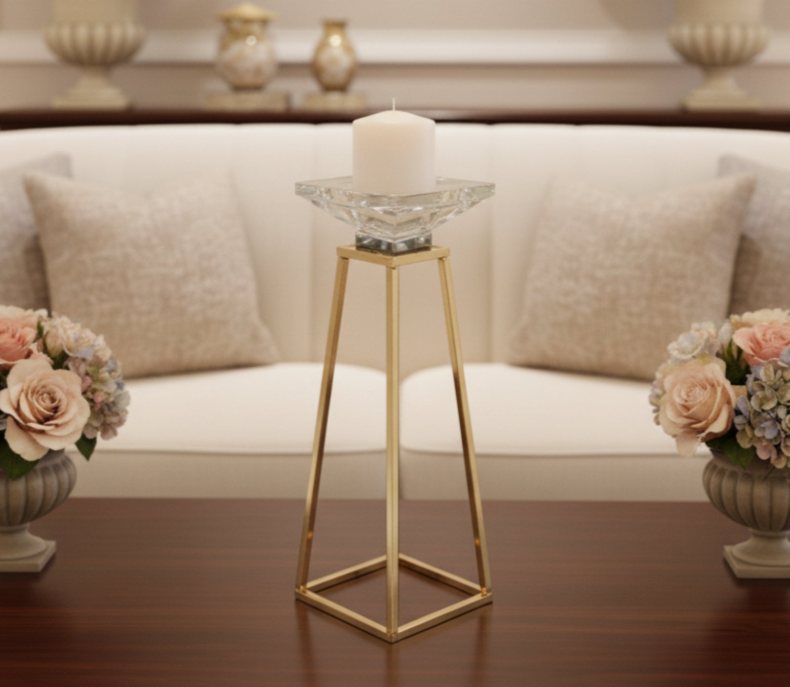 - These spectacular metal candle holders comes with a tea light holder that sits on top of a pedestal.